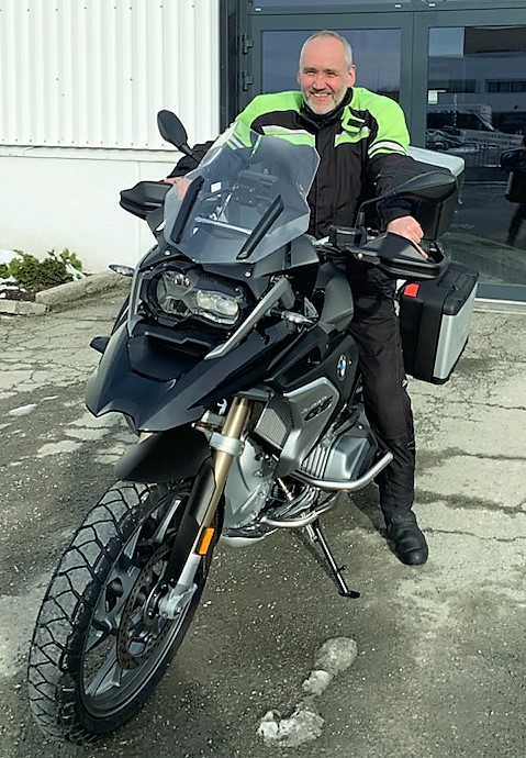 Bil (Peugeot og Skoda) og motorsykkel (BMW 1200 GS) |